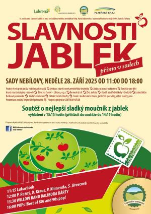 Tradiční slavnosti jablek v Nebílovech. 16. ročník s bohatým programem. Přijďte si vychutnat chutné jablečné pokrmy a užít si bohatý program pro celou rodinu.