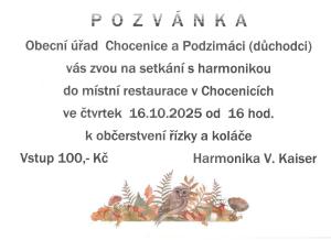Ve čtvrtek 16.10.2025 od 16.00 hod posezení s harmonikou