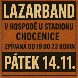 V pátek 15. listopadu 2025 od 19 hodin se v hospodě koná zpívání s kapelou Lazarband. Přijďte si užít večer plný hudby a zábavy se svými přáteli.