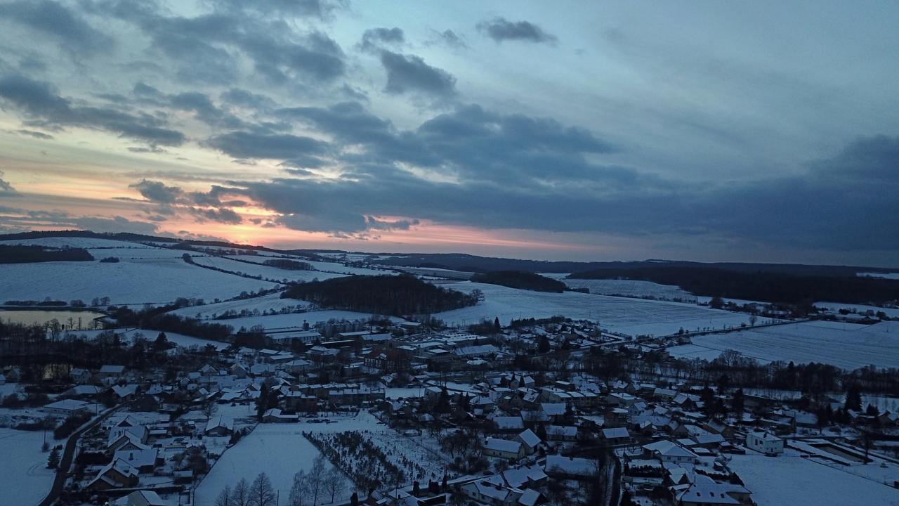 Zimní atmosféra západu slunce pohledem z výšky
